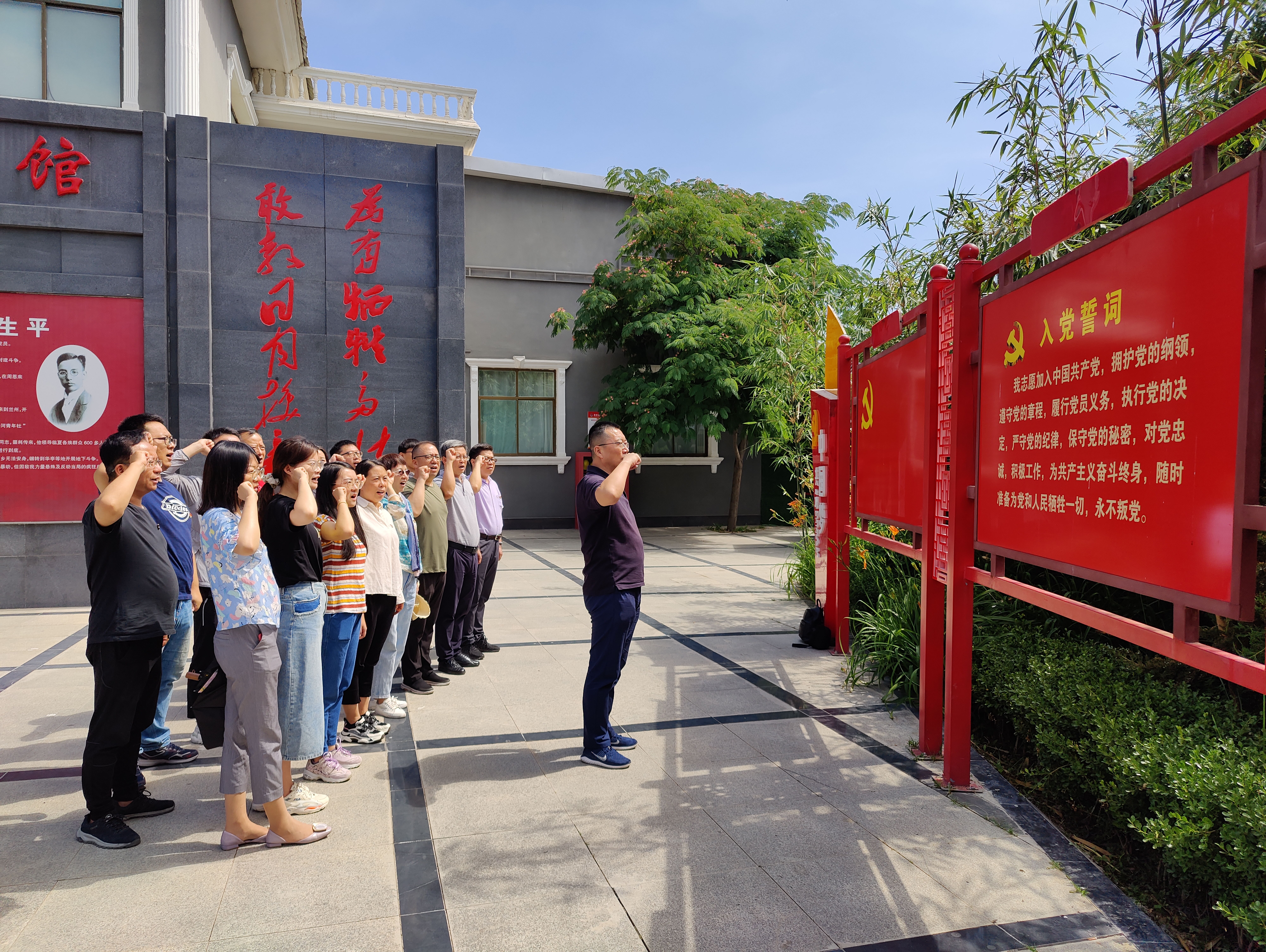在省级爱国主义教育基地胡廷珍烈士纪念馆,全体党员参观了少年廷珍、法政学潮、坚信马列、声讨列强、投身北伐、陇原播火、重振旗鼓、艰苦兵运、血铸丰碑及今朝临夏等十个展区,详细了解了胡廷珍烈士光辉战斗的一生和可歌可泣的传奇革命经历。参观结束后,在纪念馆外,全体党员面对党旗庄严宣誓,重温入党誓词。