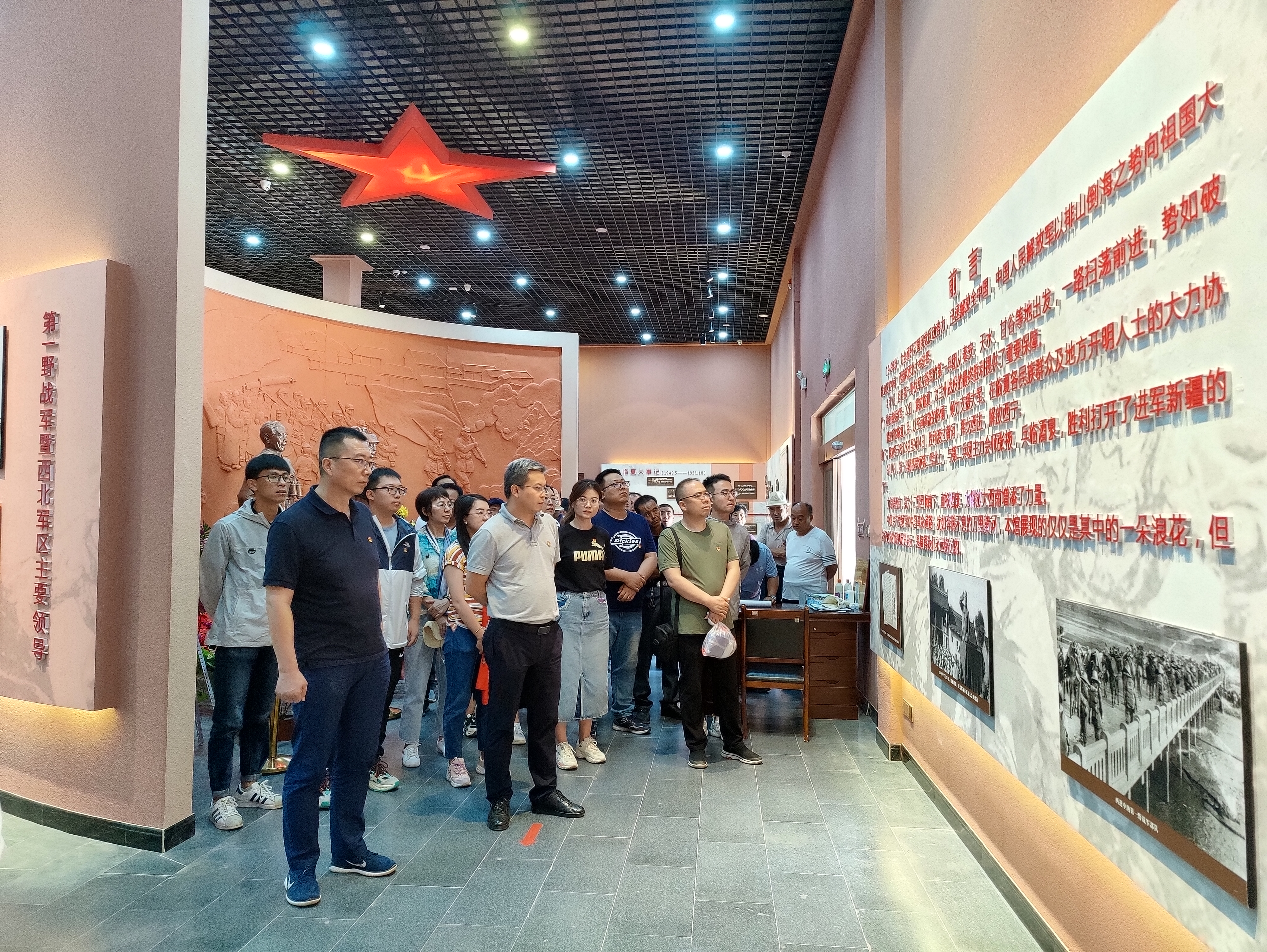 在党史教育基地解放军抢渡黄河纪念馆,大家观看了馆内珍贵的照片、文物和影像资料,学习了英雄的临夏各族人民,用古老的皮筏,运送解放军抢渡黄河天堑,创造了皮筏摆渡史上的一大奇迹,为解放青海和新疆奠定了坚实基础这一历史事迹。